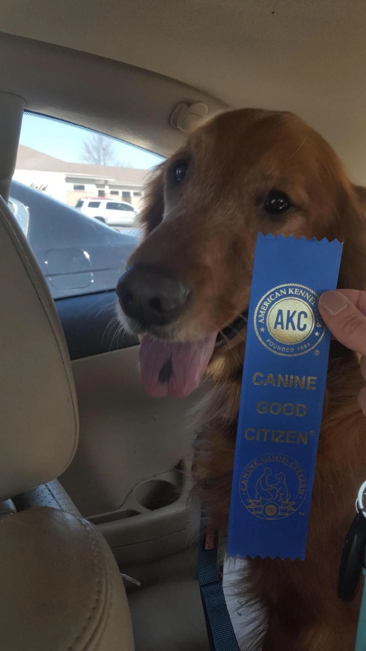 Bailey is a sweet five-year-old Golden Retriever and Bambi’s big sister. She is very well-mannered. She has gotten invovled with the training sessions and we are working on having her bark not quite as often as she has been.